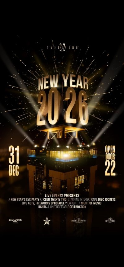 Join us for the midnight countdown and witness a spectacular fireworks display over the city as we ring in 2026 together.
